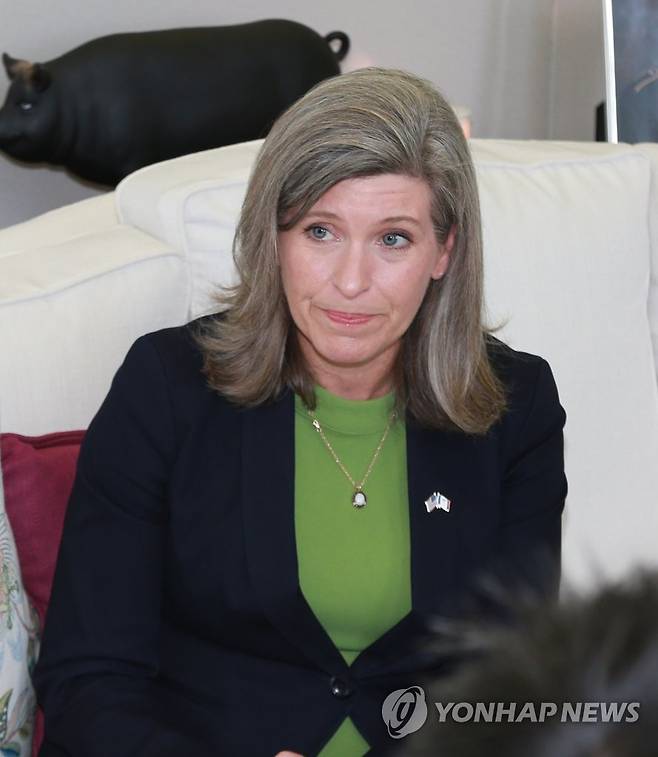 (서울=연합뉴스) 조니 언스트 미국 상원의원이 15일(현지시간) 워싱턴DC에서 여한구 산업통상자원부 통상교섭본부장과 면담하고 있다. 2021.9.16