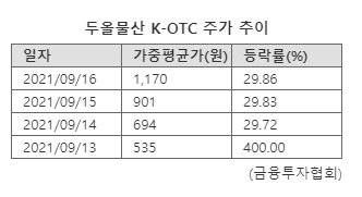 두올물산, K-OTC 입성 4일만 10배 급등..투자 열기 잇는다