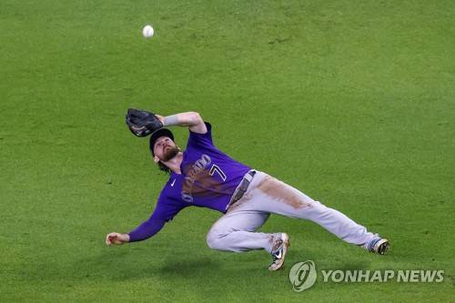 epa09470826 Colorado Rockies second baseman Brendan Rodgers catches a pop fly hit by Atlanta Braves pinch hitter Joc Pederson during the seventh inning of an MLB baseball game between the Colorado Rockies and the Atlanta Braves at Truist Park in Atlanta, Georgia, USA, 15 September 2021. EPA/ERIK S. LESSER