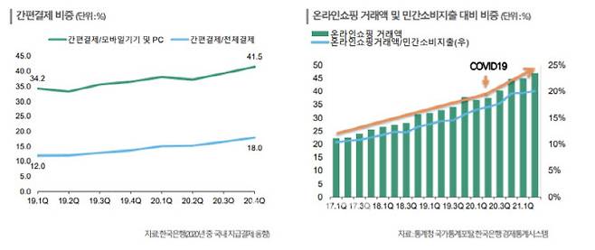 게다가 후불결제로도 페이업체가 진입하고 있다. 네이버페이는 최근 소액(30만원) 후불결제 서비스를 시행하며 핀테크 업자들의 후불 결제사업도 확대하고 있다. 여 연구원은 “휴대폰 소액결제도 한도가 30만원에서 100만원으로 확대된 점을 감안하면 핀테크 사업자의 후불결제 확대 가능성도 있다”고 지적했다.