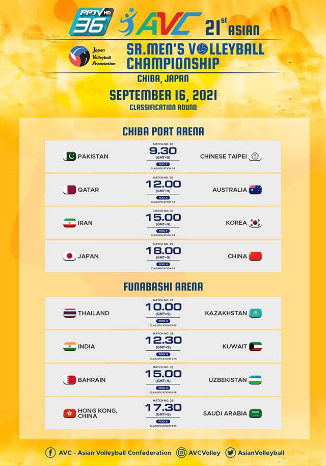 ■ 2021 제21회 아시아(AVC) 남자배구선수권대회 순위전 경기일정.(일본 지바)