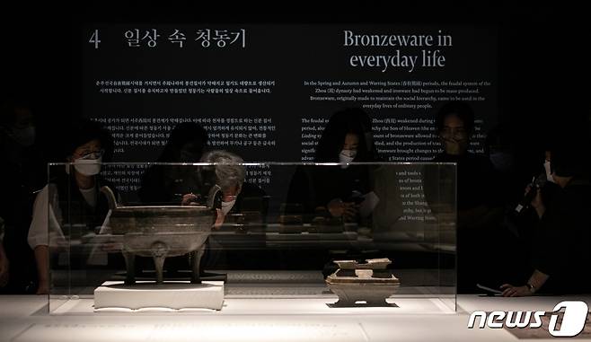(서울=뉴스1) 이승배 기자 = 16일 오전 서울 용산구 국립중앙박물관에서 열린 '중국 고대 청동기 신에서 인간으로' 특별전에 중국 청동기 문화재들이 전시돼 있다.
