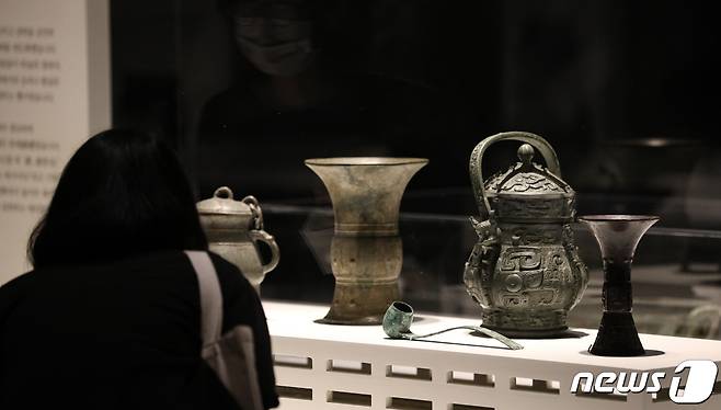(서울=뉴스1) 이승배 기자 = 16일 오전 서울 용산구 국립중앙박물관에서 열린 '중국 고대 청동기 신에서 인간으로' 특별전에 중국 청동기 문화재들이 전시돼 있다.