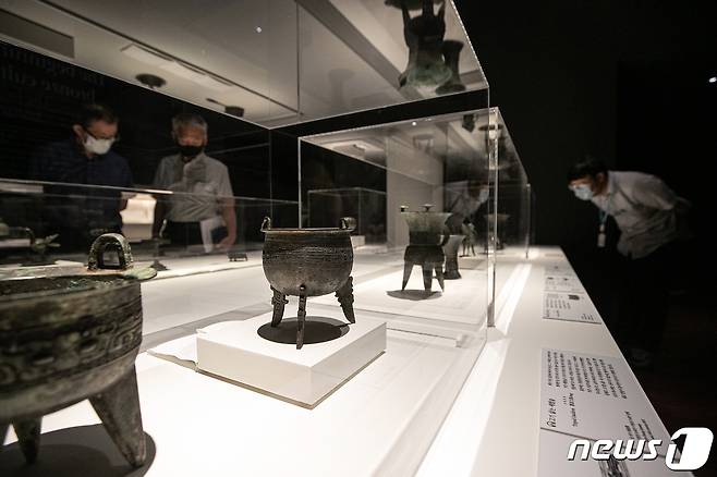 (서울=뉴스1) 이승배 기자 = 16일 오전 서울 용산구 국립중앙박물관에서 열린 '중국 고대 청동기 신에서 인간으로' 특별전에 중국 청동기 문화재들이 전시돼 있다.