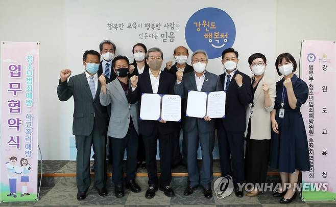 양 기관은 이날 협약을 통해 청소년 대상 학교폭력·범죄 예방 교육 및 캠페인과 위기청소년 선도 활동을 지원할 예정이다. 2021.9.16 [강원도교육청 제공. 재판매 및 DB 금지]