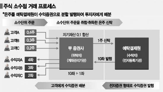 이는 금융위가 지난 12일 발표한 '국내외 주식 소수점 거래 허용방안'과 정확하게 일치한다. 금융위는 올해 10~11월 중 예결원이 증권사와 함께 혁신금융서비스를 신청받아 이를 지정하면 해외주식은 올해 중, 국내주식은 내년 3·4분기 중 서비스를 개시할 수 있을 것이라고 발표했다.