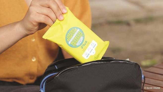 네 번째로 소개할 제품은 백패킹 시 세수를 할 수 없는 경우가 많은 저에게는 필수템인 아리얼 클렌징 티슈입니다. 모공 속 흙먼지와 미세먼지까지 말끔히 씻어주는 것 같아 가방에서 땔래야 땔 수 없는 아이템이죠. 백패킹 때는 작은 무게까지 신경이 쓰여서 한 번에 사용할 양인 2장만 비닐 지퍼 백에 넣어서 가지고 가요.