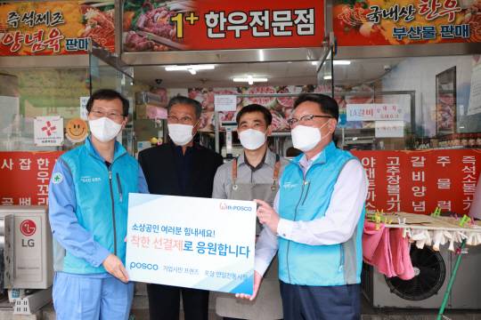 포스코와 협력사 모임인 ‘기업시민 프렌즈’는 15일 경북 포항 남구 연일읍 연일시장과 전남 광양 중마시장을 찾아 ‘착한 선결제(사진)’ 행사를 펼쳤다고 16일 밝혔다. 올해로 2년째를 맞는 착한 선결제 활동은 전통시장이나 소상공인 업체 등에 선결제하고 재방문을 약속하는 운동이다.