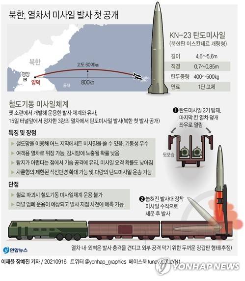 (서울=연합뉴스) 이재윤 기자 = 북한이 16일 처음 공개한 '철도기동 미사일체계'는 옛 소련에서 개발해 운용한 발사 체계와 유사하다.