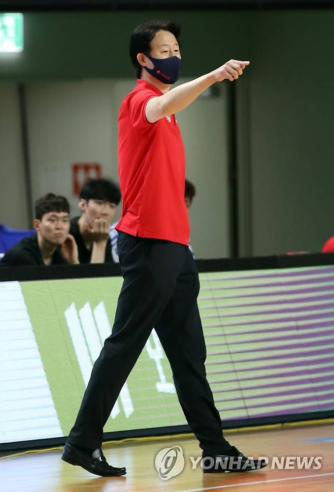 오리온 강을준 감독이 선수들에게 지시사항을 전달하고 있다. 2021.9.16
