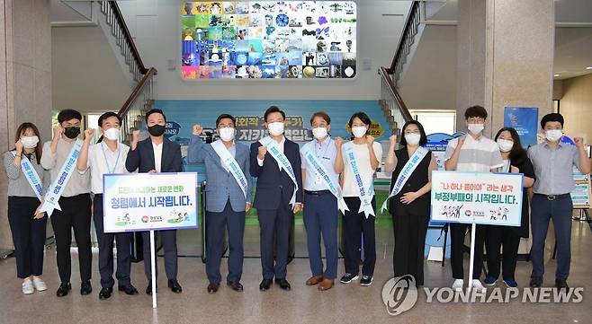 사진은 이날 경남도청에서 열린 출근길 '청렴캠페인'. 2021.9.16 [경남도 제공. 재판매 및 DB 금지]