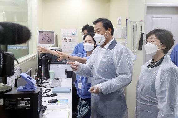장 의장 등은 이같은 주요 업무 추진사항을 점검한 뒤 선별진료소 출입구에서 의료용 장갑과 마스크, 가운 등 방역물품을 착용하고 간호사실과 병동을 둘러보며 관계자들을 격려했다.