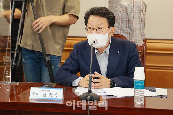 [이데일리 김태형 기자] 김광수 은행협회장이 16일 오후 서울 중구 은행연합회에서 열린 '금융위원장-금융협회장 간담회'에 참석하고 있다.