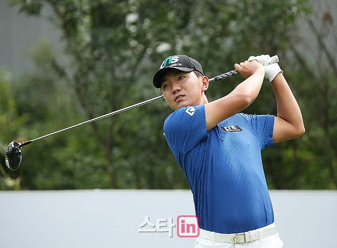 옥태훈이 1번홀 경기를 펼치고 있다.