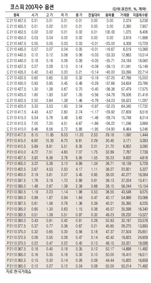 - [표]코스피90지수 옵션 시세(9월 15일)