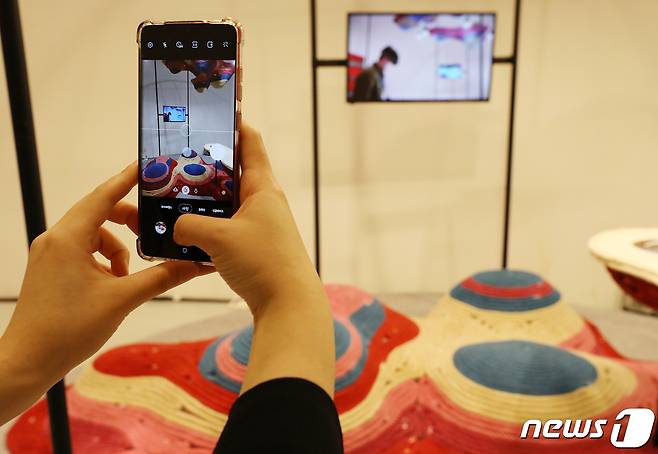 (서울=뉴스1) 김진환 기자 = 16일 서울 동대문디자인플라자(DDP)에서 열린 ‘2021 서울도시건축비엔날레’ 개막식에서 시민들이 관람하고 있다.