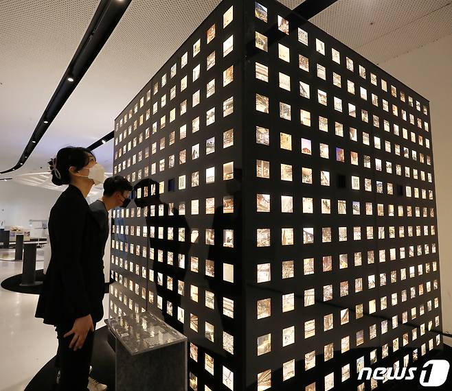 (서울=뉴스1) 김진환 기자 = 16일 서울 동대문디자인플라자(DDP)에서 열린 ‘2021 서울도시건축비엔날레’ 개막식에서 시민들이 관람하고 있다.