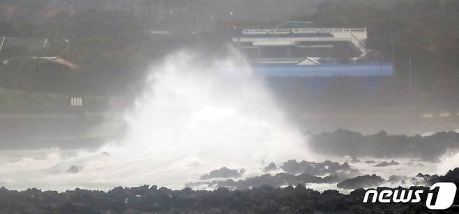 (서귀포=뉴스1) 오현지 기자 = 제14호 태풍 '찬투(CHANTHU)'가 북상 중인 16일 오전 제주 서귀포시 성산읍 해상에 거친 파도가 일고 있다. 2021.9.16/뉴스1