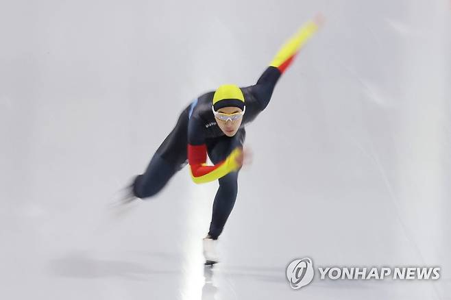 (서울=연합뉴스) 임화영 기자 = 16일 오후 서울 노원구 태릉국제스케이트장에서 열린 2021-2022시즌 국제빙상경기연맹(ISU) 스피드스케이팅 월드컵 파견대표 선발전 겸 SK텔레콤배 제56회 전국남녀 종목별 스피드 선수권대회 남자부 1000m 결승에서 신재완(단국대학교)이 질주하고 있다. 2021.9.16