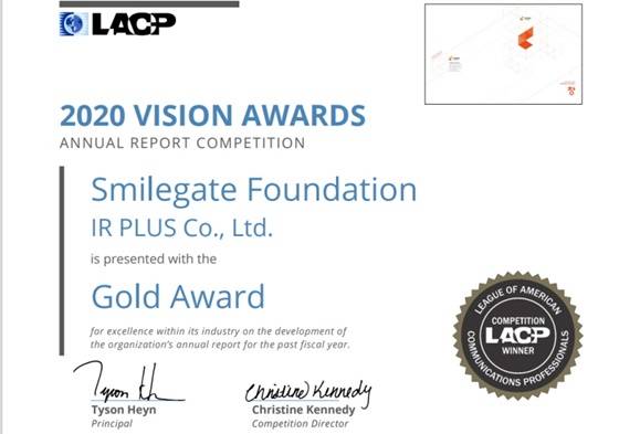 스마일게이트 희망스튜디오(이사장 권혁빈)는 미국 커뮤니케이션 연맹(League of American Communications Professionals, 이하 ‘LACP’)이 주관하는 ‘2020 비전 어워드’에서 비영리 부문 금상을 수상했다고 16일 밝혔다.