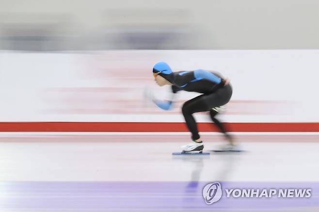 (서울=연합뉴스) 임화영 기자 = 16일 오후 서울 노원구 태릉국제스케이트장에서 열린 2021-2022시즌 국제빙상경기연맹(ISU) 스피드스케이팅 월드컵 파견대표 선발전 겸 SK텔레콤배 제56회 전국남녀 종목별 스피드 선수권대회 남자부 1000m 결승에서 박성현(한국체육대학교)이 질주하고 있다. 2021.9.16