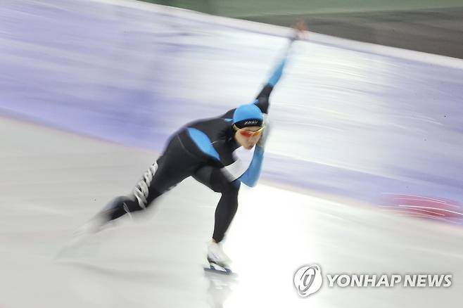 (서울=연합뉴스) 임화영 기자 = 16일 오후 서울 노원구 태릉국제스케이트장에서 열린 2021-2022시즌 국제빙상경기연맹(ISU) 스피드스케이팅 월드컵 파견대표 선발전 겸 SK텔레콤배 제56회 전국남녀 종목별 스피드 선수권대회 남자부 1000m 결승에서 박성현(한국체육대학교)이 질주하고 있다. 2021.9.16