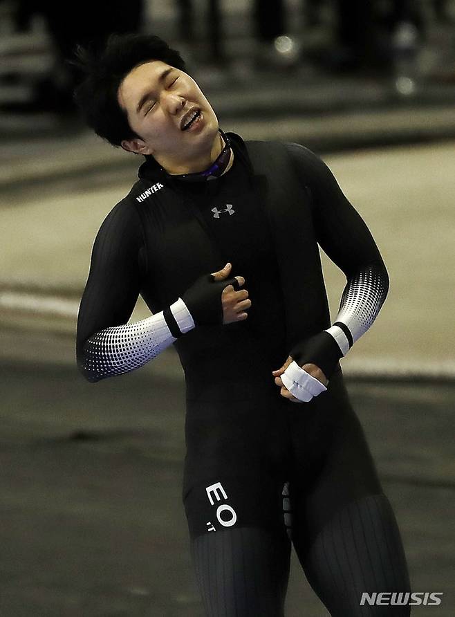 [서울=뉴시스] 홍효식 기자 = 16일 오후 서울 노원구 태릉 국제스케이트장에서 열린 SK텔레콤배 제56회 전국남녀 스피드 스케이팅 선수권대회, 남자부 1000M 결승에서 김태윤(서울시청 스피드팀) 질주한 뒤 숨을 고르며 아쉬워 하고 있다. 김태윤은 1:10.21로 2위를 기록했다. 2021.09.16. yesphoto@newsis.com