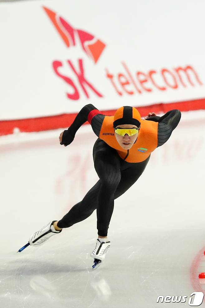 (서울=뉴스1) 안은나 기자 = 16일 서울 노원구 태릉국제스케이트장에서 열린 SK텔레콤배 제56회 전국남녀 종목별 스피드스케이팅 선수권대회 남자 1000m 결승에서 차민규(의정부시청)가 역주하고 있다. 2021.9.16/뉴스1