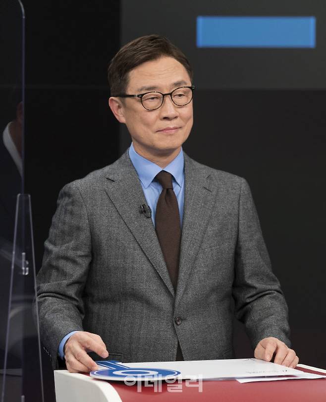 [국회사진취재단] 최재형 국민의힘 대선경선 예비후보가 16일 오후 서울 중구 TV조선 스튜디오에서 열린 국민의힘 대선후보 경선 토론회에 참석해 토론 준비를 하고 있다.