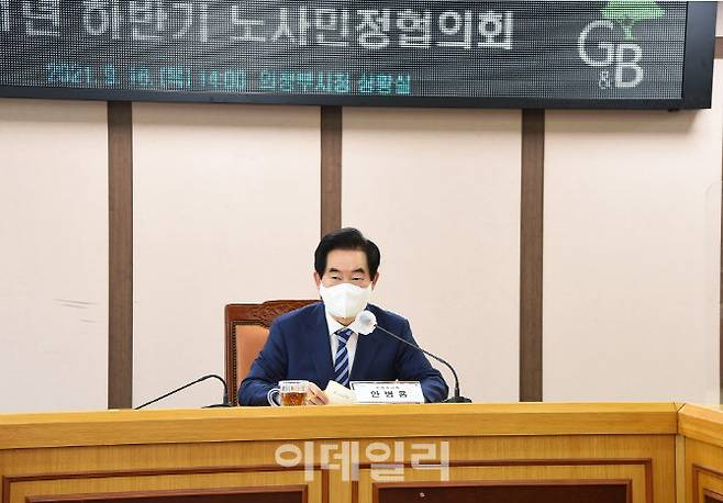[의정부=이데일리 정재훈 기자] 안병용 의정부시장이 16일 2021년 하반기 노사민정협의회에 참석해 위원들과 의견을 나눴다.