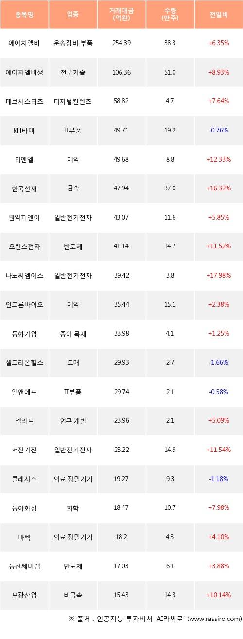 16일, 코스닥 외국인 순매수상위에 일반전기전자 업종 3종목