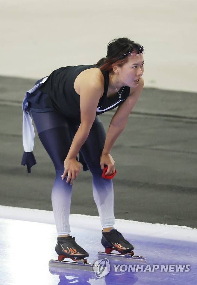 (서울=연합뉴스) 임화영 기자 = 16일 오후 서울 노원구 태릉국제스케이트장에서 열린 2021-2022시즌 국제빙상경기연맹(ISU) 스피드스케이팅 월드컵 파견대표 선발전 겸 SK텔레콤배 제56회 전국남녀 종목별 스피드 선수권대회 여자부 3000m 결승에서 박지우(강원도청)가 결승선을 통과한 뒤 숨을 고르고 있다.