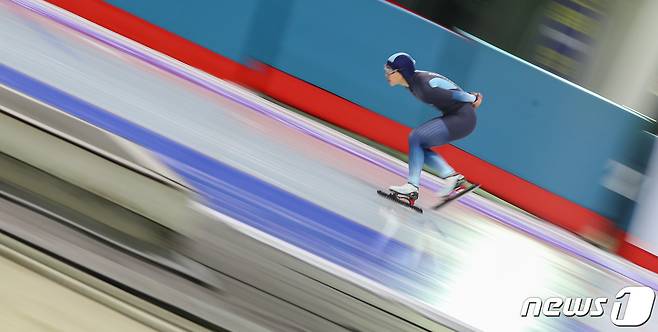 (서울=뉴스1) 안은나 기자 = 16일 서울 노원구 태릉국제스케이트장에서 열린 SK텔레콤배 제56회 전국남녀 종목별 스피드스케이팅 선수권대회 여자 3000m 결승에서 김보름(강원도청)이 역주하고 있다. 김보름은 4분19초44로 1위를 기록했다. 2021.9.16/뉴스1