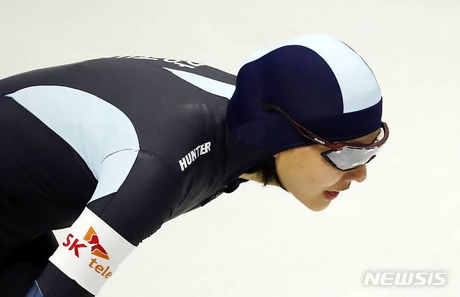 [서울=뉴시스] 홍효식 기자 = 16일 오후 서울 노원구 태릉 국제스케이트장에서 열린 SK텔레콤배 제56회 전국남녀 스피드 스케이팅 선수권대회, 여자부 3000M 결승에서 김보름(강원도청)이 질주하고 있다. 2021.09.16. yesphoto@newsis.com