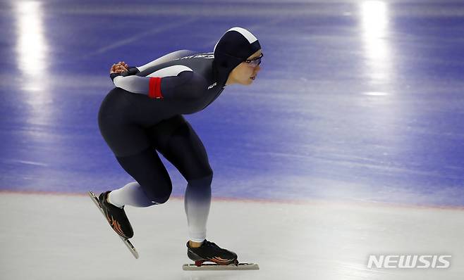 [서울=뉴시스] 홍효식 기자 = 16일 오후 서울 노원구 태릉 국제스케이트장에서 열린 SK텔레콤배 제56회 전국남녀 스피드 스케이팅 선수권대회, 여자부 3000M 결승에서 박지우(강원도청)이 질주하고 있다. 2021.09.16. yesphoto@newsis.com