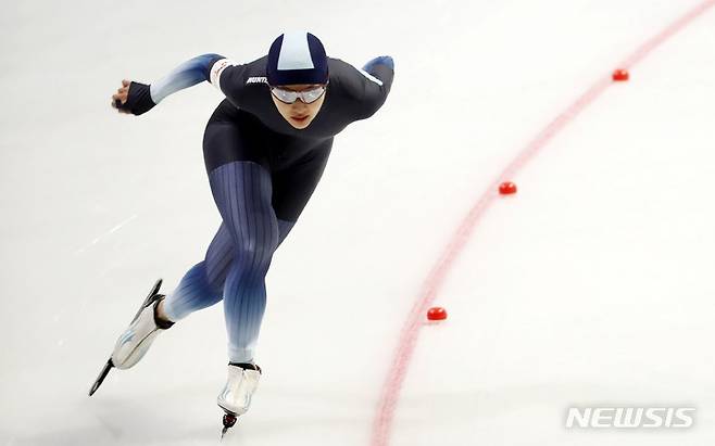 [서울=뉴시스] 홍효식 기자 = 16일 오후 서울 노원구 태릉 국제스케이트장에서 열린 SK텔레콤배 제56회 전국남녀 스피드 스케이팅 선수권대회, 여자부 3000M 결승에서 김보름(강원도청)이 질주하고 있다. 2021.09.16. yesphoto@newsis.com