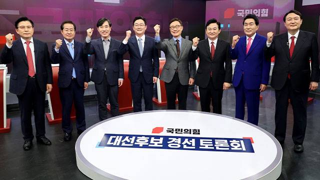 1차 예비 경선을 통과한 국민의힘 대선 주자 8명이 오늘(16일) 오후 첫 TV 토론에서 맞붙었습니다.