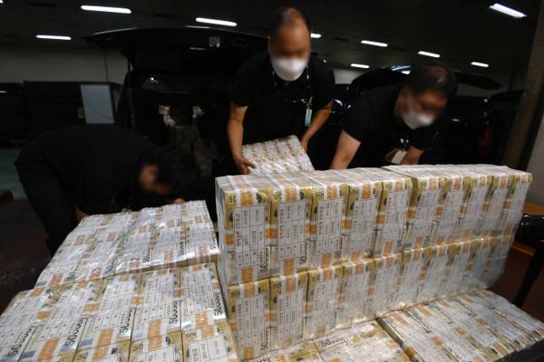 16일 오전 서울 강남구 역삼동 한국은행 강남본부에서 관계자들이 5만원권 추석자금 포장분을 나르고 있다. 사진공동취재단
