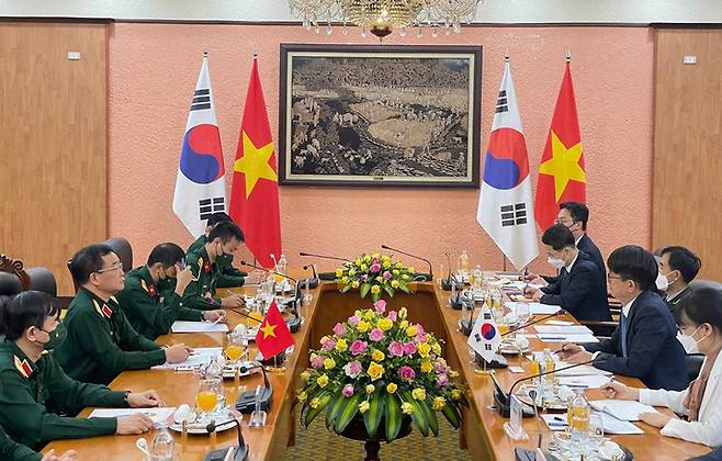 [서울=뉴시스] 고범준 기자 = 박재민 국방부 차관이 16일 베트남을 방문하여 호앙 쑤안 찌엔(Hoang Xuan Chien) 베트남 국방부 차관과 한-베트남 국방전략대화를 개최하고 한반도 정세를 포함한 지역안보 정세와 양국 간 국방교류협력 활성화 방안에 대해 논의했다. (사진=국방부 제공) 2021.09.16. photo@newsis.com *재판매 및 DB 금지