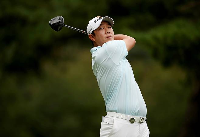 (서울=뉴스1) = 16일 경상북도 칠곡 파미힐스CC에서 열린 2021 DGB금융그룹 어바인 오픈 1라운드 7번홀에서 김민준이 드라이버 티샷을 치고 있다. (KPGA 제공) 2021.9.16/뉴스1