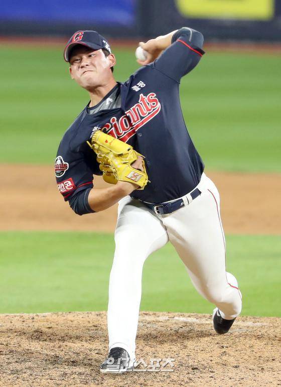 프로야구 KBO리그 롯데 자이언츠와 KT 위즈의 경기가 16일 오후 수원 kt위즈파크에서 열렸다. 롯데 김진욱이 7회 선발 박세웅에 이어 등판 역투하고있다.