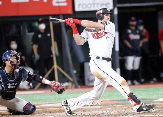 프로야구 KBO리그 롯데 자이언츠와 KT 위즈의 경기가 16일 오후 수원 kt위즈파크에서 열렸다. KT 호잉이 7회 1타점 2루타를 날리고있다.