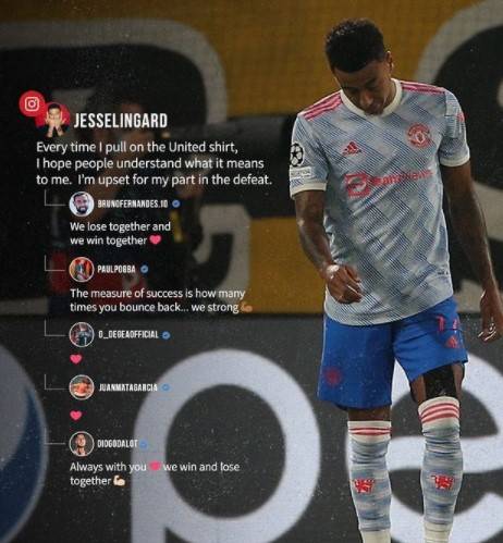 이런 상황에서 맨유의 팀 동료들이 린가드를 감쌌다. 해리 매과이어, 폴 포그바, 디오구 달롯, 다비드 데 헤아 등 팀 동료들의 위로의 메시지를 전했고, 특히 브루노는 "우리는 함께 지고, 함께 이긴다"며 린가드 때문에 진 것이 아니라고 했다.