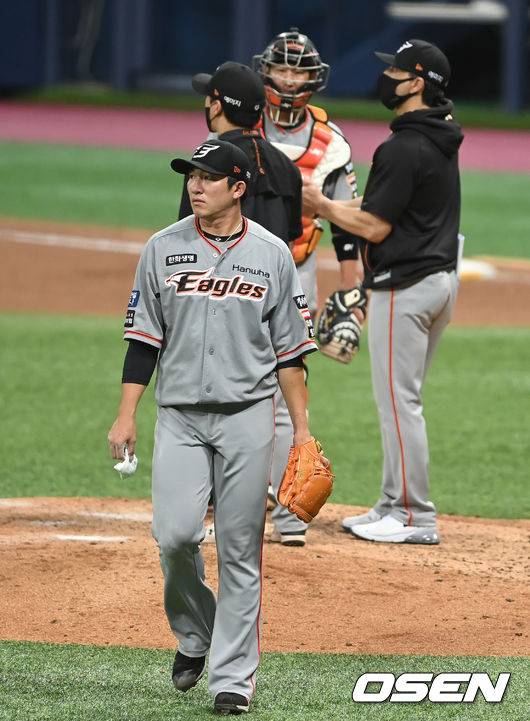 8회말 2사 1,2루 한화 장시환이 강판되고 있다. 2021.09.16/ youngrae@osen.co.kr