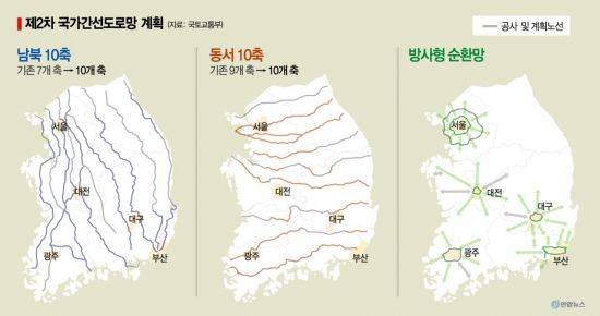 이번 계획을 통해 도로망 건설의 근간이 되는 국가 간선도로망이 30여년 만에 바뀐다. 국가 간선도로망은 지난 1992년 이후 남북 방향 7개축, 동서 방향 9개축으로 구성된 격자망과 대도시 권역의 6개의 순환망을 중심으로 한 ‘7×9 + 6R’로 운영돼 왔다. 이 계획이 앞으로는 남북 방향 10개축, 동서 방향 10개축과 6개의 방사형 순환망인 ‘10×10 + 6R²’ 체계로 재정비된다.