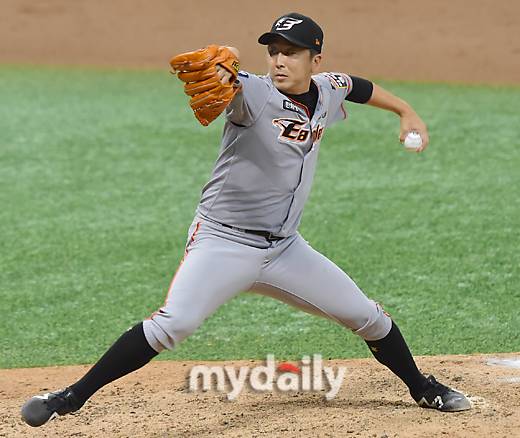[마이데일리 = 한혁승 기자] 한화 정우람이 16일 오후 서울 고척동 스카이돔에서 열린 2021 KBO리그 한화-키움 경기 8-5로 앞선 9회말 교체되 마운드에 올랐다.- ⓒ마이데일리(www.mydaily.co.kr). 무단전재&재배포 금지 -