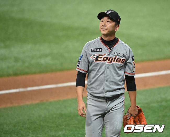 9회말 2사 1,2루 한화 정우람이 키움 김웅빈에게 동점 적시타를 허용한 뒤 아쉬워하고 있다. 2021.09.16/ youngrae@osen.co.kr