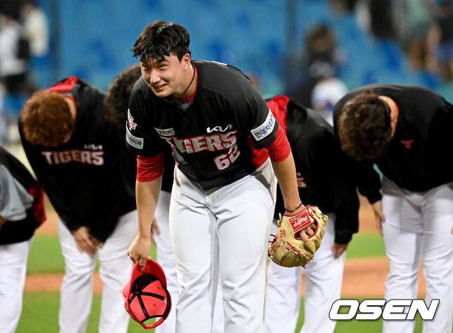 승리가 확정된 순간 KIA 정해영이 팬들을 향해 인사를 하고 있다. 2021.09.16 /ksl0919@osen.co.kr