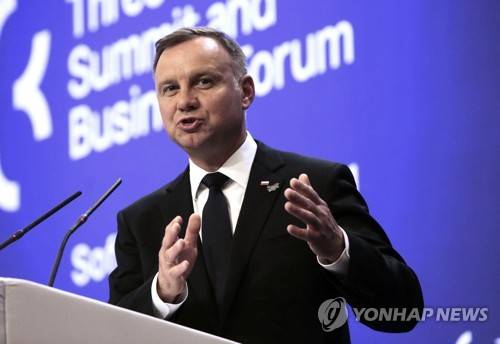 FILE - In this Friday, July 9, 2021 file photo, Poland's President Andrzej Duda, speaks during press conference of Three Seas Summit at National Palace of Culture in Sofia. Bulgarian President Rumen Radev has reappointed a retired general as interim prime minister to lead a new caretaker government until the next early election is held in November. The Balkan country is the European Union’s poorest member. (AP Photo/Valentina Petrova, File) FRIDAY, JULY 9, 2021 FILE PHOTO