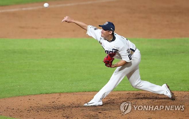 (창원=연합뉴스) 김동민 기자 = 16일 창원NC파크에서 열린 2021 KBO 프로야구 NC 다이노스와 LG 트윈스 경기. 9회 초 NC 이용찬이 역투하고 있다. 2021.9.16